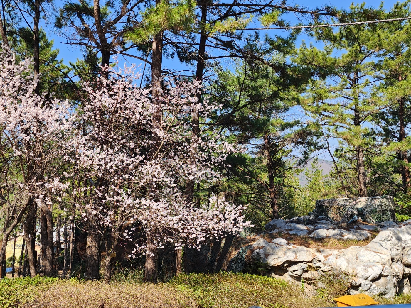 벚나무 한가운데 홀로 피는 꽃이 이른 벚꽃인 줄 알았는데 살구꽃인 것 같아요.