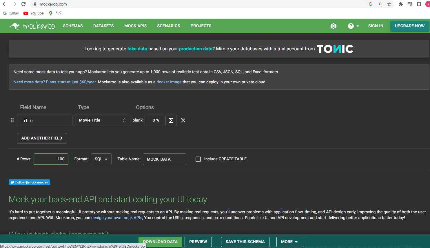 mockaroo에서 데이터를 생성하고 data.sql에 삽입